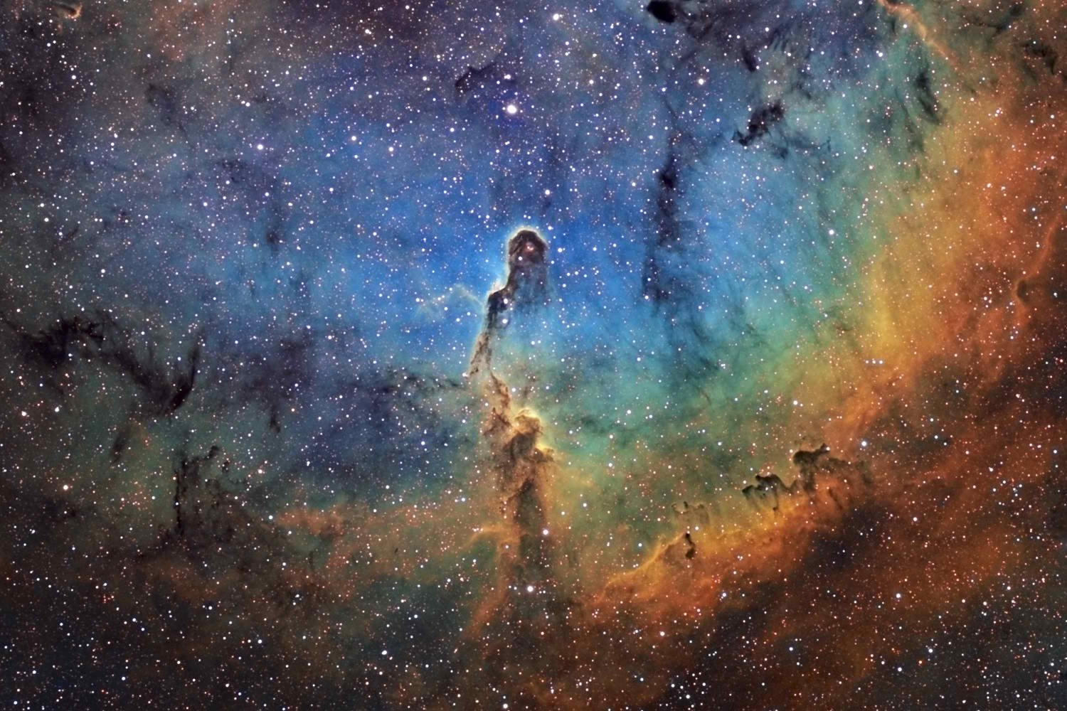 Captured bu NASA: Hubble Space Telescope IC 1396A The large and relatively faint emission nebula IC 1396 is more than 100 light years across. The Elephant’s Trunk itself stretches over a region of 20 light years. The dark globule is eroded by the radiation pressure from the central star that illuminates the nebula.