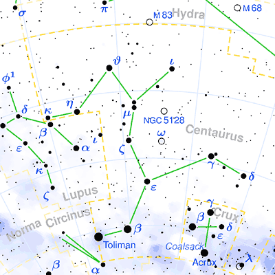 Centaurus is one of the 48 constellations first identified by the second century Greek astronomer Ptolemy. It represents a centaur, a half man half horse creature from Greek mythology. It is an old constellation that dates back to the ancient Babylonians. They knew it as the Bison-man. It was depicted as a four-legged bison with the head of a man. The ancient Greeks identified it as a centaur, but it is not clear exactly which centaur it represents. It may represent Chiron who was accidentally wounded by Hercules. After his death, Hercules honored him by giving him a place in the stars. Under a dark sky, the outline of the constellation does indeed resemble a centaur. It is usually depicted as a centaur sacrificing an animal which is represented by the constellation Lupus, the wolf.